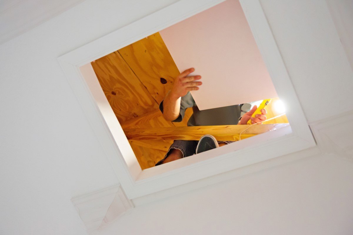 Armez-vous d’une lampe de poche et dirigez-vous vers le grenier. Soyez prudent là-haut: s’il n’y a pas de revêtement de sol approprié, passez soigneusement de la solive à la solive. (Si vous entrez entre les solives, vous pourriez mettre un pied à travers le plafond de la pièce ci-dessous.)